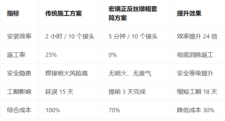 3. 现场技术支持:宏瑞钢筋机械连接厂技术团队驻场指导,优化钢筋下料与丝头加工工艺,实现 "切割 - 镦粗 - 套丝 - 连接" 全流程高效作业