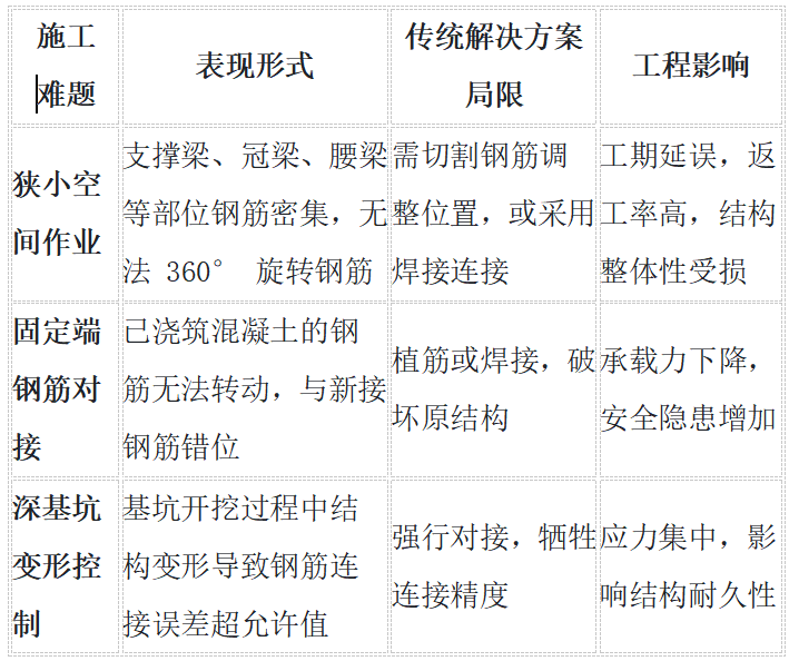 地铁深基坑工程因地质条件复杂、空间受限、结构受力特殊,镦粗套筒连接面临三大技术瓶颈: