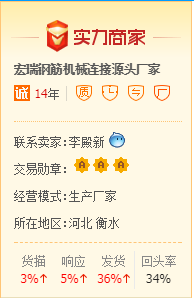 在销售的渠道上来说,互联网带来的便利也是不言而喻。虽然在线下已经取得了一定的成绩,但是衡水市桃城区宏瑞钢筋机械连接厂仍然希望为更多喜欢该品牌产品的顾客们提供更便捷的服务,在1688平台开设官方旗舰店,如今已经是14年的诚信通老店,6年的实力商家,提高了品牌影响力。