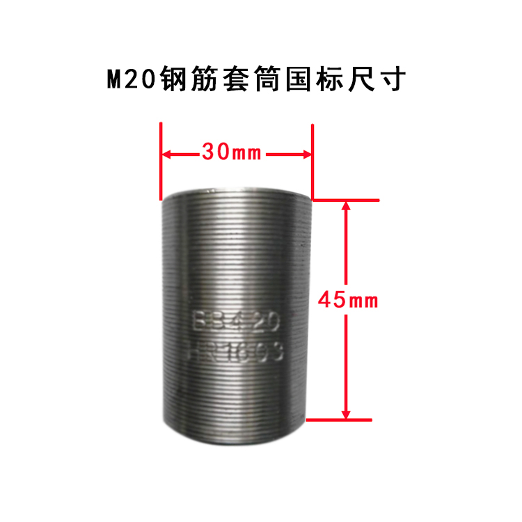 钢筋直径:使用专业工具准确测量钢筋直径,确保套筒与钢筋直径匹配。20毫米钢筋应选择适用于20毫米钢筋的套筒,如连接三级钢20毫米钢筋选用规格为30mm×45mm的国标套筒。