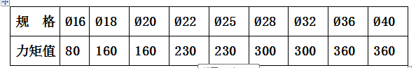 (3) 拧紧力矩值不一样:变径钢筋连接套筒按细钢筋的力矩值,普通钢筋连接套筒按正常直径的力矩值。